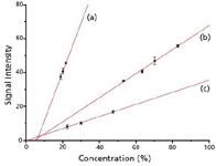 In a quantitative analysis using LIBS, white noise was a problem. The white noise was generated by the plasma formation conditions and the emission wavelengths, surfaces, and matrices of the sample (8). The serious signal fluctuation was caused with only micro white noise. As a general rule, the white noise was decreased by using a delay time generator. But, the white noise did not completely disappear by using this method. So the measurement was performed in low-pressure conditions to minimize the white noise; it almost never appeared at low pressure. A quantitative analysis using LIBS has two important issues in a vacuum. First, the measurement conditions for a high fluctuation of an LIP must be optimized during an actual experiment. It is necessary because of the environmental gas condition, the sample preparation process, and the vibration around the equipment. Second, the positioning of the measurement location in a plasma sphere is very important. The plasma sphere is enlarged by the rarefied air, and it is discriminated by the inner sphere and the outer sphere. The inner sphere is brighter than the outer sphere, and it has been shown that the ion particles are superior in number to the neutral atoms. On the contrary, the neutral atoms are superior to the ions in the outer sphere. It is thus proper that the measurement is executed in the relatively stable outer sphere (1–4).