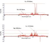 Figure 7: The LIBS spectra of Nd-mixed samples: MS-01 (upper), MS-03 (lower).