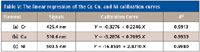 Table V: The linear regression of the Cr, Cu, and Ni calibration curves