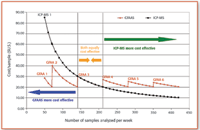 Figure 1. Cost per sample versus sample throughput for graphite furnace AA and ICP-MS (first year of operation, six elements per sample).