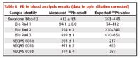 Table I. Pb in blood analysis results (data in ppb, dilution corrected)