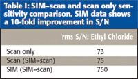 Table I: SIMâscan and scan only sensitivity comparison. SIM data shows a 10-fold improvement in S/N