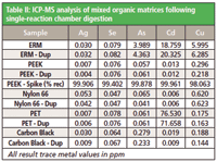 Table II: ICP-MS analysis of mixed organic matrices following single-reaction chamber digestion