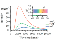 The high operating temperatures of the SOFC device produced a significant amount of blackbody radiation, which is a major challenge that needs to be overcome to conduct in situ characterization measurements (5). Planck's description for blackbody radiation, equation 1, shows that the intensity of the radiation emanating from these SOFCs is directly proportional to operating temperature (5).