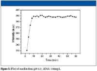 The effect of the reaction time is evaluated by determining the RLS intensity every 2 min with 1 h and shown in Figure 5. From Figure 5, we know that the binding reaction of [Ru(bpy)2 (BTIP)]2+ and DNA is completed after 10 min and can be stable over 1 h when they are mixed together at room temperature. So all measurements are made after they are mixed together at an ambient temperature of 25 °C for 10 min.