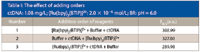 Under the optimum conditions, the dependence of IRLS upon the concentration of ct-DNA is determined. The analytical parameters of this method are listed in Table III. Table III also shows that there is a good linear relationship between IRLS and ct-DNA in a wide range of 0.00–1890 ng/L. The correlation between IRLS and the concentration of ct-DNA is IRLS = 278.75C +80.59 (mg/L), with a correlation coefficient (r) of 0.9988. The detection limit of ct-DNA is 9.46 ng/mL. The relative standard deviation for the determination of ct-DNA at 1.08 mg/L is 1.5 % (n = 10).