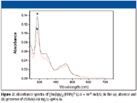 The investigation of ruthenium compounds that can bind coordinatively to DNA is one of the most attractive research fields for the development of novel nonplatinum anticancer agents (1–3). Ruthenium complexes generally show fewer toxic side effects than platinum-based drugs and exhibit activity in cisplatin-resistant cells or in cells where cisplatin is totally inactive (4). Moreover, ruthenium has a rich redox chemistry whose complexes in oxidation states two and three are sufficiently stable and under current development as metallopharmaceuticals. Studies on the interaction of ruthenium compounds with DNA are not only able to determine the mechanism of some diseases, but also enable researchers to design new medications with high effective rates and low toxicity, filter new drugs, treat cancer, and alter anticancer medicine.