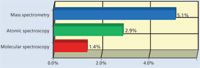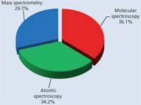 The spectroscopy market can be segmented into three distinct sectors: molecular spectroscopy, atomic spectroscopy, and mass spectrometry (MS) (Figure 1). The applications of the techniques included in each sector and their prospects differ significantly, especially within each sector. Worldwide revenue for all spectroscopy segments is estimated at about $10 billion for 2012, or about 22% of the entire laboratory analytical and life-science instrument market.
