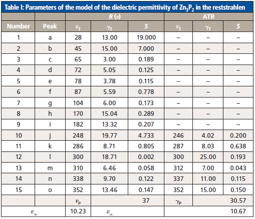 Table I: Parameters of the model of the dielectric permittivity of Zn3P2 in the reststrahlen