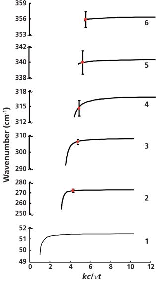 where ν is the frequency of the ATR spectrum minimum, c is the speed of light in a vacuum, and n is the refractive index of material of the ATR semicylinder (in this case, CsI with n = 1.72).