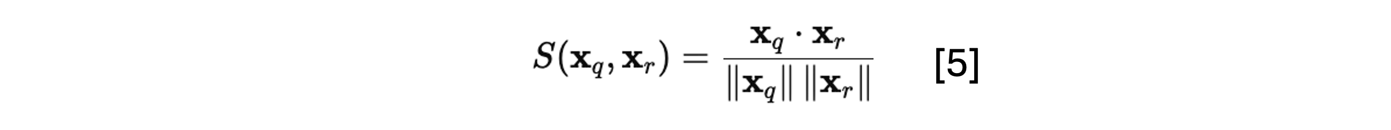 Library search relies on similarity metrics between a query spectrum xq and a reference spectrum xr. In matrix form: