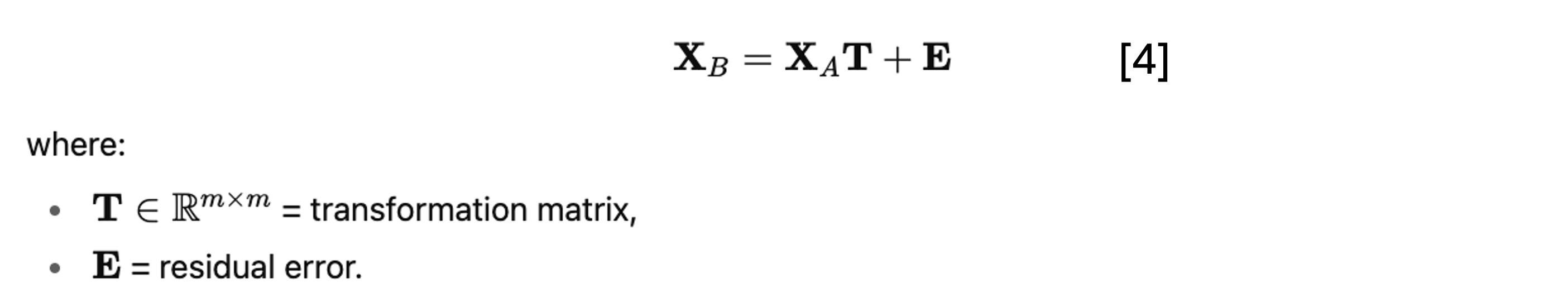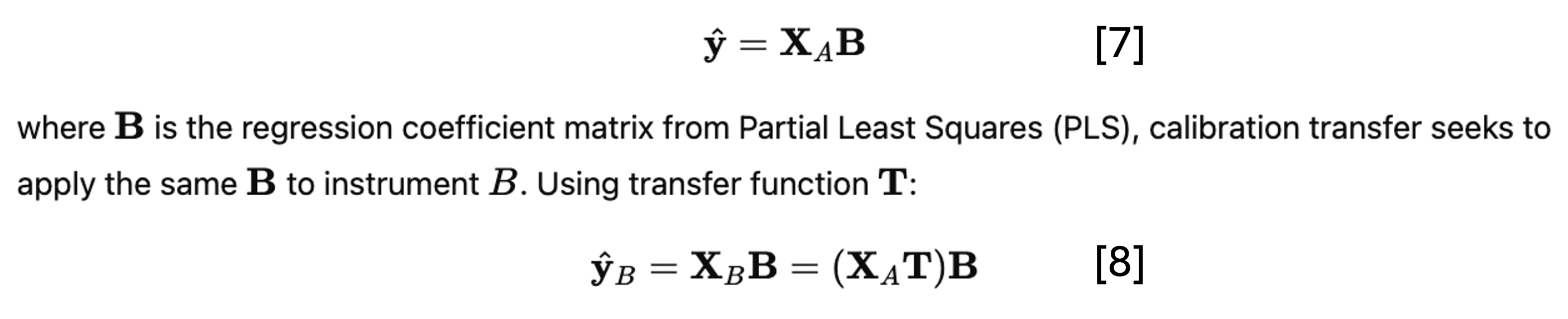 Instrumental variability leads to systematic deviations between instruments. If XA and XB represent spectra measured on instruments A and B, a transfer function can be expressed: