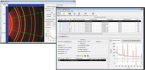 Improvements in 2D X-ray detector technology have resulted in reduced data collection times and reproducible quantitative intensity data compared to using photographic film. Reduced data collection time is critical in laboratories where high throughput of sample analysis prevails. With reproducible quantitative intensity XRD data, successful phase identification using established search match methods can be performed routinely when using a high-quality editorially reviewed diffraction database (5). An analysis of a ceramic powder using a 2D detector (Figure 4) resulted in identification of the ceramic as α-Al2O3 (corundum).