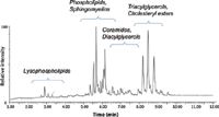 Figure 2: Total ion chromatogram (ESI+) from UHPLCâTOF-MS lipidomics analysis of serum showing chromatographic separation of major lipid classes.