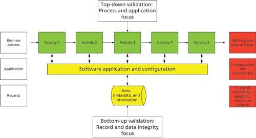 In Spectroscopy’s sister publication LCGC Europe, I recently discussed that we need to conduct computerized system validation in a different way (12). Typically, we conduct the project in a top-down manner, looking at the process, improving it, and then configuring the software application to that process as shown in Figure 2. However, this approach has the flaw that the records acquired and interpreted by the software may not be adequately protected, especially if the records are held in directories in the operating system.