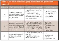 Table I: USP instrument group classification and qualification approach