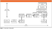 The <1058> triangle that I mentioned earlier must be modified so that you can have a better understanding of my approach to the 4Qs model. My take on this is shown in Figure 1, and it is shown as a time sequence running from left to right. The elements of data quality described in <1058> are shown as the top four layers. I have expanded the AIQ layer to show how it relates to the instrument vendor's processes, and we will concentrate on these two layers in more detail.