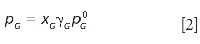 Although droplet size may change substantially, due to changes in the RH around the droplet, size may also change due to evaporation of semivolatile molecules from the droplet (18). This evaporation is evident in Figure 4, as in between the step changes in droplet size due to RH steps, the glycerol droplet size decreases linearly and its RI increases linearly (dotted lines) owing to its vapor pressure (p0G≈ 10-2 Pa). A molecule's vapor pressure is fundamentally important, because it determines partitioning between the gas and condensed phases. The slower change in droplet size and RI is due to the evaporation of glycerol (as well as commensurate water to maintain the droplet water activity equivalent to the RH). In the experiment, a humidified N2 flow is used, resulting in a concentration gradient from the droplet surface to the gas phase, leading to slow volatilization of glycerol at a rate governed by its vapor pressure at the solution composition, pG, which in turn depends on the glycerol mole fraction, xG, and the activity coefficient, γG: