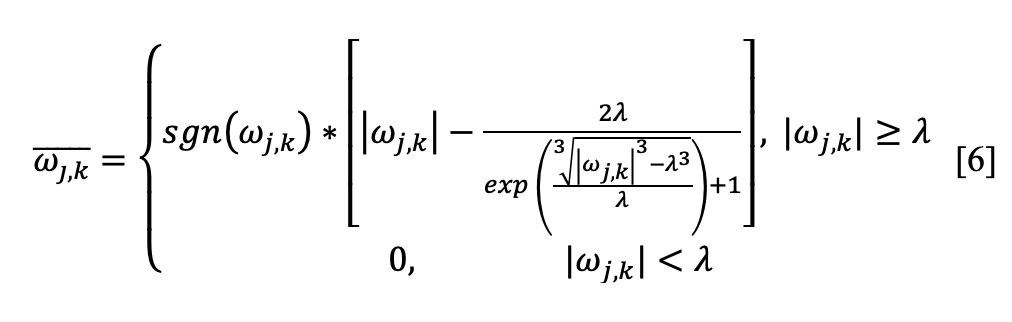 The soft threshold function is expressed mathematically as equation 2: