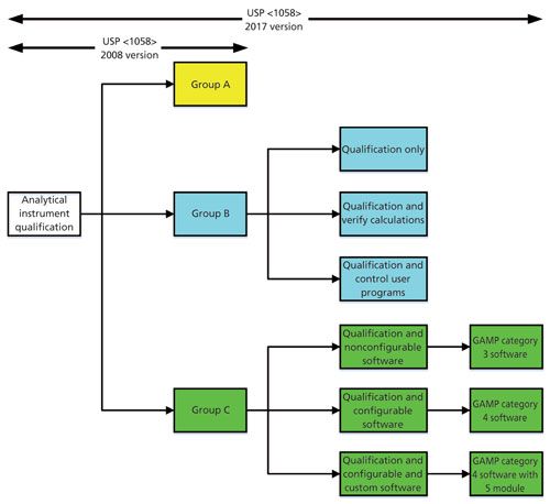 As can be seen from Figure 3, these three subtypes can be mapped to GAMP software categories 3, 4, and 4 plus category 5 modules. These changes now align USP <1058> closer to, but not identically with GAMP 5. The main difference is how firmware in Group B instruments is validated-directly with GAMP 5 or indirectly when qualifying the instrument with USP <1058>. Mapping of GAMP 5 software categories to the new USP <1058> groups has been published (16) for those readers who want more information harmonizing <1058> and GAMP approaches. This chapter is much improved and closer in approaches, but not quite there yet!