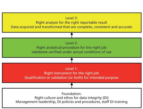Figure 1: The four layers of the data integrity model for laboratories within a pharmaceutical quality system. Adapted with permission from reference 4.