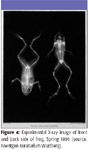 Röntgen continued to experiment throughout the night. In fact, it is said that he ate and slept in his laboratory for a time. At one point, he held his wife's hand in the path of the rays for a short time. When the photographic plate was developed, it showed an image of her hand. The bones and a ring she was wearing cast a distinct shadow. The flesh, being more permeable to the rays, cast a fainter shadow.