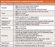 Table I: Sections and contents of a standard operating procedure (SOP)